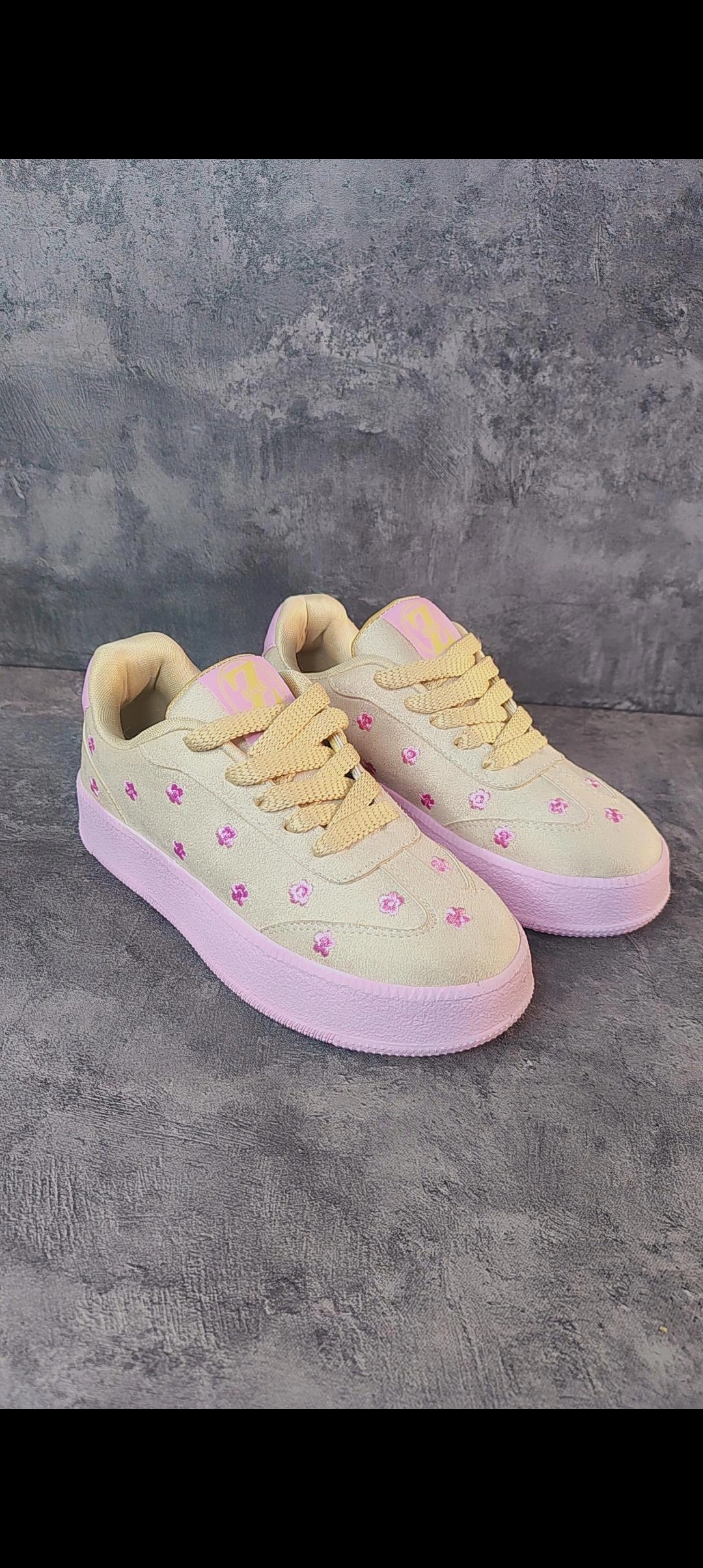 کتانی ونس زنانه طرح گل بابونه پینترسی سایزبندی 37 تا 40 رنگ صورتی کرم جنس سوویت درجه یک سایز بندی 37تا40 سبک و خوش پا کف دوخت محکم و زیبا