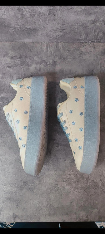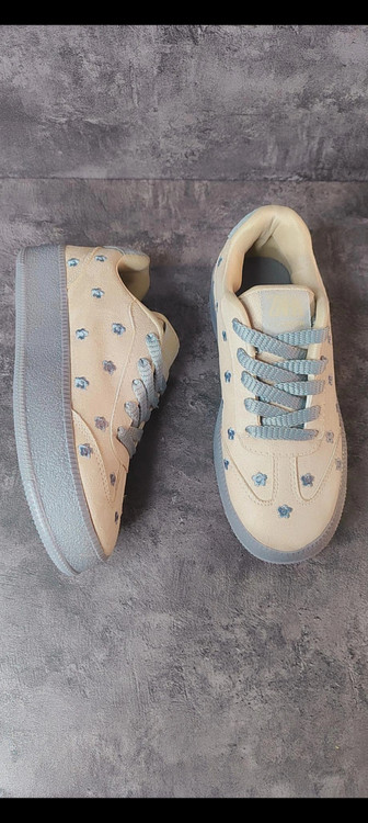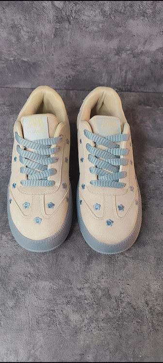 کتانی ونس زنانه گلدوزی طرح گل بابونه مدل پینترسی رنگ طوسی ی کرم